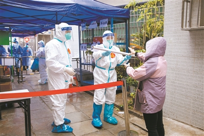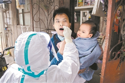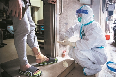 江南中社區醫院的醫生上門為管控區居民做核酸檢測。