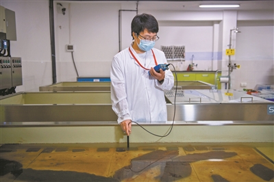 在廣東省博物館出水文物的實驗室內,來自“南澳I號”的船板和瓷器等海洋出水文物正靜靜地“躺”在特制的脫鹽水池中。