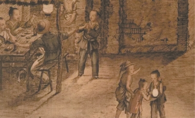 清代畫家郎世寧繪制的《羊城夜市圖》(局部)