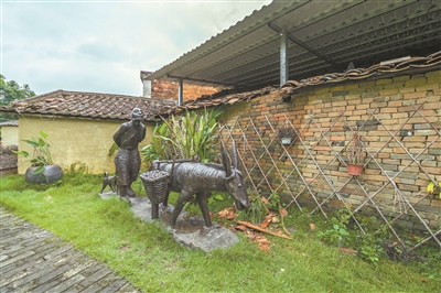 隨著時代變遷,交通越來越發達,如今,古渡已不再承擔貨運的功能。采訪當日是個無風的陰天,水面靜悄悄的,昔日繁華已不復見。不過,從古街到渡口,一路上的雕塑記載著這段歷史。謝鑒洲指著路邊一組農戶運荔枝的雕塑說:“以前農民就是從樹上新鮮摘下荔枝,裝滿兩籮筐,讓牛或者驢馱著;也有的是人工挑著,將荔枝從林子送到渡口,再由停泊在渡口的帆船運送出去。”