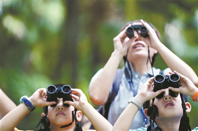 小朋友在植物園參加觀鳥(niǎo)活動(dòng),用雙眼捕捉大自然的精靈