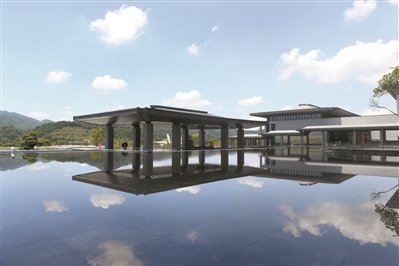 廣州國家版本館坐落于廣州市從化區美麗的鳳凰山麓、流溪河畔,占地面積24.69萬平方米,總建筑面積9.43萬平方米。廣州國家版本館由何鏡堂院士領銜設計。建筑以“中華典藏、嶺南山水、時代新韻、文明燈塔”為總體設計理念,融合中華制式與嶺南特色,從禮樂格局、大國氣象、嶺南風物、地域氣候等角度對嶺南傳統建筑工法進行現代化轉譯:流溪河水縈繞的前廣場,五嶺造型的館名石,書卷理念的文沁橋,“植根中華”的格木古樹,厚重雄偉的“文明基石”,以及大量書法、繪畫、木雕、銅藝等當代大家名家藝術作品,聯袂展示了深厚的中華文化底蘊、鮮明的嶺南特色和強烈的時代氣息,共同打造南粵大地的中華文化殿堂。