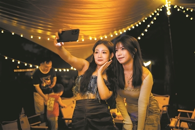 夏日的夜晚,女孩們來到大學(xué)城外環(huán)綠道附近與朋友相聚,用照片來記錄今夜的美好時(shí)光