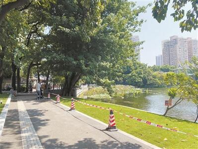 據悉,荔灣湖環湖碧道改造從泮塘村外接環小翠湖至仁威廟入口,面積約3649.82平方米,改造包括拆除圍墻、入口空間整理、新增碧道、新增活動平臺、綠化整理、增加海綿設施等,使公園更好實現生態、文化、景觀、休憩及海綿城市功能。