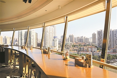 歷經一年改造,愛群旋轉餐廳以古今相融的姿態煥新重啟。日前,記者沿江走訪,在江上、對岸眺望,圓盤形的旋轉餐廳依然是老照片中的模樣。當電梯門一開,淡啡色墻面,原木色餐桌,星空圖案的地毯,令人感覺進入了時尚輕奢餐廳。“本次轉型升級通過舊貌換新顏改造餐廳,用現代活力詮釋經典,布局年輕市場。這次改造導入適合當代消費需求的餐飲品牌,使老餐廳煥發新活力。”嶺南商旅集團相關負責人說。