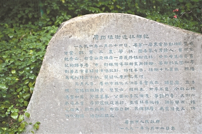 越秀公園北部鯉魚崗東面路旁,立有“廣州植樹造林碑記”,為1991年3月12日,廣州市人民政府記錄當年植樹一事所立。據記載,1950年春,廣州市開始組織造林,消滅荒山。當年創建越秀公園植物標本園(今廣州蘭圃前身)。1956年2月,駐穗部隊7萬多人在越秀公園植樹5萬多株,撒播樹種60多萬枚。3月9日,廣州市綠化工作委員會成立,立法規,墾荒山,植樹造林。
