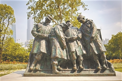 2008年的春運最讓人難忘。百年一遇的寒潮襲來,火車無法北上,廣州站一度滯留數十萬旅客。4萬子弟兵緊急出動,維持秩序,保障旅客安全。《廣州日報》刊登了一組反映子弟兵連續奮戰的報道,并刊發了一幅反映子弟兵累得“站著都能睡著”的照片,引起社會各界熱烈反響。雕塑家許鴻飛據此創作了《九天九夜》雕像。子弟兵 “為人民服務”的崇高精神凝固成了永久的城市記憶。