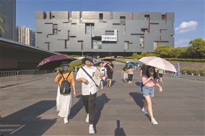 7月28日,廣東省博物館,剛打卡完的游客們意猶未盡。