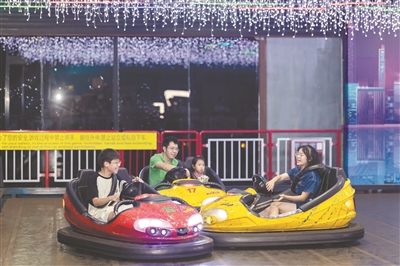 7月29日,正佳廣場,游客們駕駛著碰碰車“你追我趕”。
