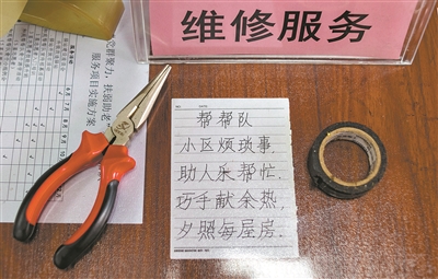 “巧手獻(xiàn)余熱,夕照每屋房”,這是和苑“幫幫隊”的服務(wù)承諾。