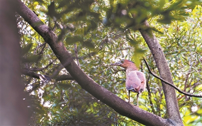 今年7月,在廣州市白云區(qū)潯峰山生態(tài)公園,國家二級保護野生鳥類黑冠鳽被發(fā)現(xiàn)在樹上筑巢。