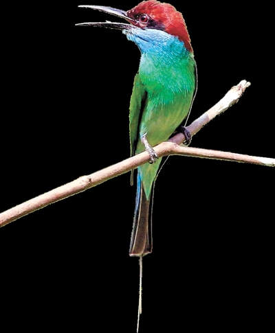 今年5月,廣東省科學院動物研究所在海珠濕地動物監(jiān)測調(diào)查中,發(fā)現(xiàn)了數(shù)只栗喉蜂虎。