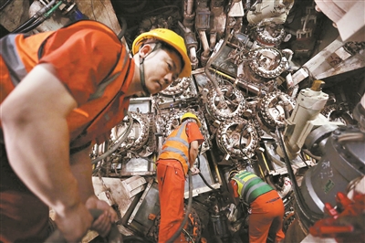 盾構機內8平方米的地方,工作人員正在保養管路。