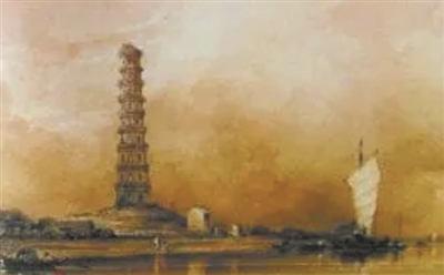 清代畫家筆下的琶洲塔,就在珠江畔。
