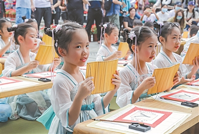 在“三月三·上巳在西關”活動中,學童誦讀《新三字經》