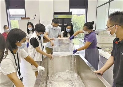 此外,2020年9月29日至2021年1月17日期間舉辦的“州城外 珠江邊——解放中路安置房項(xiàng)目考古成果展”中展出了那批珍貴的晚唐五代時(shí)期木履,館方也招募了6名文物愛好者協(xié)助更換浸泡水溶液,體會(huì)了一把修復(fù)木質(zhì)文物的獨(dú)特體驗(yàn)。
