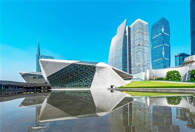 廣州國際會展中心以“珠江來風”為主體,賦予靜態建筑“飄”的形式美感,象征珠江暖風吹過大地;矗立在白鵝潭畔的廣東省“三館合一”項目,外形宛如一艘停泊在珠江岸邊的輪船,寓意滿載嶺南文化的巨輪即將揚帆起航……