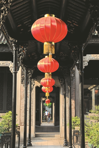 陳家祠廊道上的燈籠頗有喜慶氣氛。
