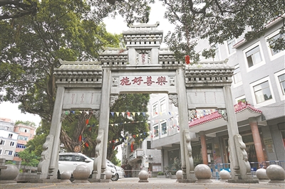如果說衛氏大宗祠讓人看到了廣州人的孝道,綸生白公祠和“樂善好施”牌坊則讓人看到了廣州人的仁善。江海大道龍潭村有一座四柱五樓三門式石牌坊,在這里聳立了一個多世紀。正中廡殿頂刻“圣旨”二字,橫匾刻“樂善好施”四個字。這是清光緒十七年(1891年)由光緒皇帝下旨所建的。