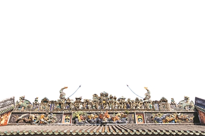 明末清初,戰爭頻繁,廣府祠堂的興建陷入低谷。廣州“一口通商”后,經濟迅速恢復,積累了大量的宗族財產,廣府迎來歷史上的第二個立祠和修繕祠堂的高峰期。今天留存的不少大祠堂都是這一時期修繕的,比如沙灣的留耕堂。這一時期新建的祠堂多以三開三進的中小祠堂為主,同時也出現了新的特點。一是建筑更具本地特色,用上了更先進的工藝,比如木雕、石雕、瓦陶藝、彩畫等,石檐柱、蝦公梁、鑊耳山墻也開始大量出現,人們利用裝飾中富有地方特色的圖案來傳達和睦、孝道、倫理、忠勇等家國思想。另一個是出現了以陳家祠為代表的“合族祠”,以原貢院附近的大小馬站、流水井、越華路、廣衛街等處分布最為集中,比如何家祠、朱家祠、趙家祠等。廣東民間工藝博物館館長黃海妍說,與傳統的祠堂相比,合族祠是各地同姓氏宗族共同合資建造,目的是為參與建造合族祠的同性宗族子弟在省城參加科舉考試、辦理各種事務等提供便利,已經不是嚴格意義上的宗祠,其作用就像各地同姓宗族在廣州設立的“辦事處”,從血緣關系轉向了更廣的社會聯系。