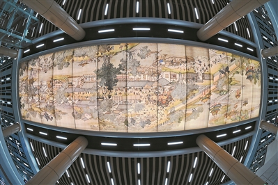 佛山地鐵3號線“東平站”出站大廳的“清明上河圖”裝飾可以同佛山持續數百年的商業記憶相映成趣。