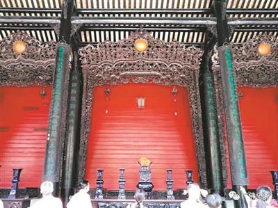 據史料記載,廣州陳家祠籌建于清光緒十六年(1890年),光緒二十年(1894年)落成,是廣東72縣陳姓族人捐資合建的宗祠和書院。記者發現,在陳家祠后進正廳,也就是當年供奉祖先的“祖堂”內,正中央楹柱上掛著一幅巨大的木制對聯,正是“神安屬北村房”所贈。經專家隨后考證,“北村房”即今佛山南海黃岐北村的陳氏分支。今天北村內同樣有一座“陳家祠”,雖然建筑規模和藝術價值遠不如廣州陳家祠,但其修建年代比廣州陳家祠還早了31年。