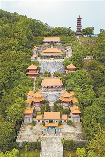 “霍英東建設南沙,捐資重建南沙天后宮,很大程度源自他對故鄉的熱愛,這也是媽祖精神在霍氏家族的體現。”欒成說。在廣場抬眼望去,一排排殿堂建筑,一改傳統閩粵天后廟一貫的家廟風格,集福建湄洲媽祖廟、北京故宮和南京中山陵格局于一體,依山層疊而上,氣勢磅礴,與嶺南其他天后古廟截然不同,“其他天后古廟,純粹是紀念廟宇,而南沙天后宮不僅是紀念媽祖的地方,而且將媽祖文化的緣起、生涯、生活等都聚集在一起展示,更富文化韻味,體現了媽祖向海而生,包容、無畏、大愛、進取的精神,也寄托了霍老先生借媽祖文化勉勵霍氏家族以及南沙人拼搏發展,奉行大愛立德的優秀傳統。”欒成說。