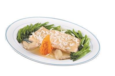 在中國大酒店的“粵宴中國·消失的名菜”中,金陵鴨芋角、西施蟹肉盒和錦鹵云吞等餐前冷葷基本還原了傳統做法,鴨芋角以燒鴨為餡,噴香惹味,蟹盒小巧精致,云吞酸甜可口;白汁昆侖斑則是適應當今市場需求的改良創新之作,昆侖斑即石斑。大廚吸收昆侖鮑片的制法,將傳統做法中的筍片替換為鮑魚片、冬菇片等,整齊劃一擺出回魚形,方寸間盡顯精妙功夫。而鷓鴣粥、核桃仙翁奶露等一系列養生膳食菜式則詮釋了現代健康飲食新風尚。