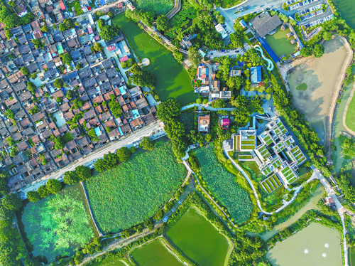 廣州北部花都區炭步鎮,悄藏著廣州第二個“國寶村”。“紅棉古樹青云橋,小巷深處人家繞。書室櫛比入塘影,漁樵耕讀一夢遙?!痹娋涿枋龅幕涰嵐乓庵?,正是這座極具嶺南特色的廣府古村落——塱頭村,距今已有約700年歷史。荷塘之畔、榕樹之下,保存著完整的明清青磚建筑逾300座,村中還有20多座祠堂書室,連綿400多米,與古代民居一道,組成了占地約6平方公里、氣勢恢宏的古建筑群,堪稱嶺南宗祠與民居博物館。如今,古村中依然深巷幽幽、書香氤氳,耕讀的靜美時光仿佛從不曾離去。隨著春陽臺、和春住、古村市集與展覽等多元文化業態陸續落地,傳統文化和現代文化碰撞出新的火花。