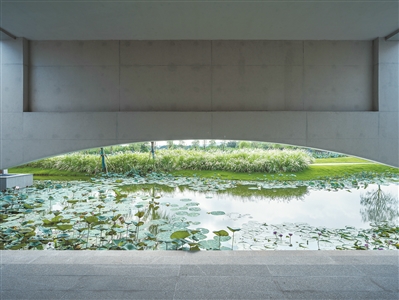 站在村口一棵古榕下放眼看去,古村東南角荷塘畔的全新多功能藝術文化中心——春陽臺又是一道特別的風景。春陽臺由著名建筑師張永和設計,采用紅瓦、青磚和素混凝土為材,以塱頭古村“梳式街巷”為靈感設計步道,并在屋頂建有25個荷塘,與古村荷塘共同構成“立體荷塘”。這座獨具匠心的建筑自今年4月20日向公眾開放后,很快就成了古村新的打卡點。