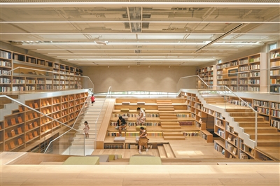 春陽臺藏書樓著實令人震撼,人字形大階梯將整個空間劃分為上下兩層。首層大廳陳列全套文淵閣《四庫全書》及一冊四庫真本,后者為文瀾閣遺物,彌足珍貴。兩層藏書樓及錯落其間的回廊,開架陳列近三萬冊圖書,中國傳統經史子集皆備,古今版本俱有;崇寧萬壽大藏經本、宋版書頁、海山仙館叢帖及名家字畫點綴于木色紋理的壁間與墻角。中世紀羊皮紙手抄本、歐洲“搖籃本”等西方經典也沒有缺席。藏書樓附設公共閱覽室與深夜閱覽室,文學、歷史、哲學、藝術、生活、旅行、鄉建、親子等專題圖書陳列其中。