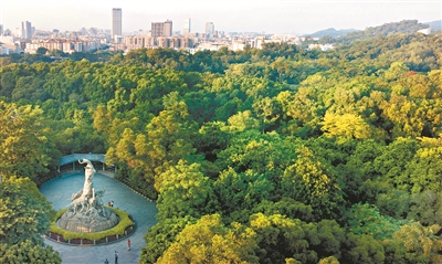 它與一片山齊頭并進。越秀山從來不是一山獨秀,它有自己的“家族”和“兄弟”。從1210米海拔的“廣州第一峰”天堂頂開始,到帽峰山、火爐山、白云山、越秀山、蓮花山,再到黃山魯、龍穴島,“廣州脊”地質脈絡延伸逾150公里,海拔落差1210米,各種地貌單元幾乎一應俱全。越秀山代表廣州的人文高度。億萬斯年,它和“兄弟”們同行共進,一起成長為廣州文化的表征。