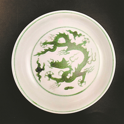 白地綠彩龍紋盤