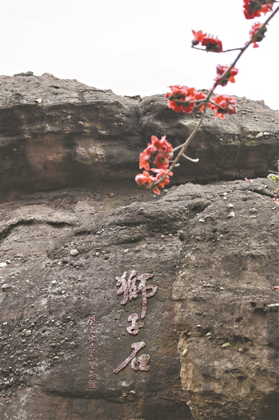 古采石場遺址的諸多巨石中,唯有“獅子石”是大自然鬼斧神工的作品。順著工作人員手指的方向,記者見到一座高逾13米,長10米,外觀酷似一頭威武雄獅的紅色砂巖。紅色木棉花下,雄獅臥坐,扼守珠江。珠江入海口這一段自古名曰獅子洋,正因獅子石而得名。獅子石東側有古海蝕崖,是遠古海水拍打陸地的痕跡。記者臨石遠望,獅子洋風光旖旎,輪船點點,恍然間,那海浪滔天的遠古時代仿佛近在眼前。