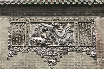 廣州陳家祠修建時,各種建筑材料都要使用最好的。陳家祠磚雕是廣東磚雕,以精心制作的水磨青磚為主要材料,雕刻非常精細,細如發絲,所以又被稱為“掛線磚雕”。廣東磚雕是在燒制好的磚面上進行雕刻的,對磚的質量要求很高,選用的是廣東東莞的上等青磚,制作十分講究,燒制后的磚需軟硬適中,以磚色青灰為佳。雕刻前把成型的青磚放在水中光滑石上細磨,制成平整如鏡的水磨磚,這種磚質地細膩純凈,易于精細雕刻。
