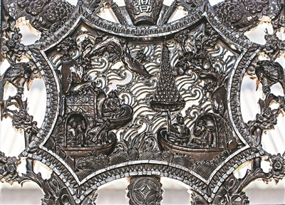 陳家祠內,木雕裝飾被廣泛應用,幾乎所有露明的木構件都雕刻裝飾,雕刻技法以浮雕和鏤雕為主,按照所處位置選擇恰當的題材,將木雕裝飾藝術與建筑結構和實用功能完美結合。