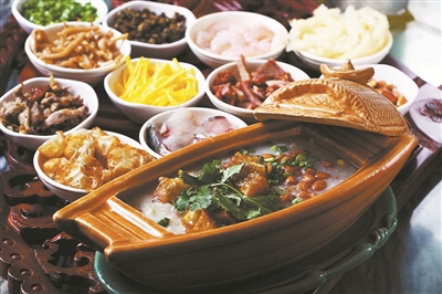《史記·貨殖列傳》記載:“楚越之地,地廣人稀,飯稻羹魚,或火耕而水耨。”嶺南百姓的飲食,自古以飯、粥、魚、菜為主。啖粥,是廣州人的調(diào)理養(yǎng)生之道。在粥中加入各種食材,不僅味道好,還有保健之功用。