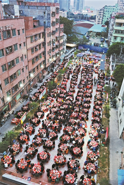 廣州蕭崗村去年設千桌宴鬧元宵。