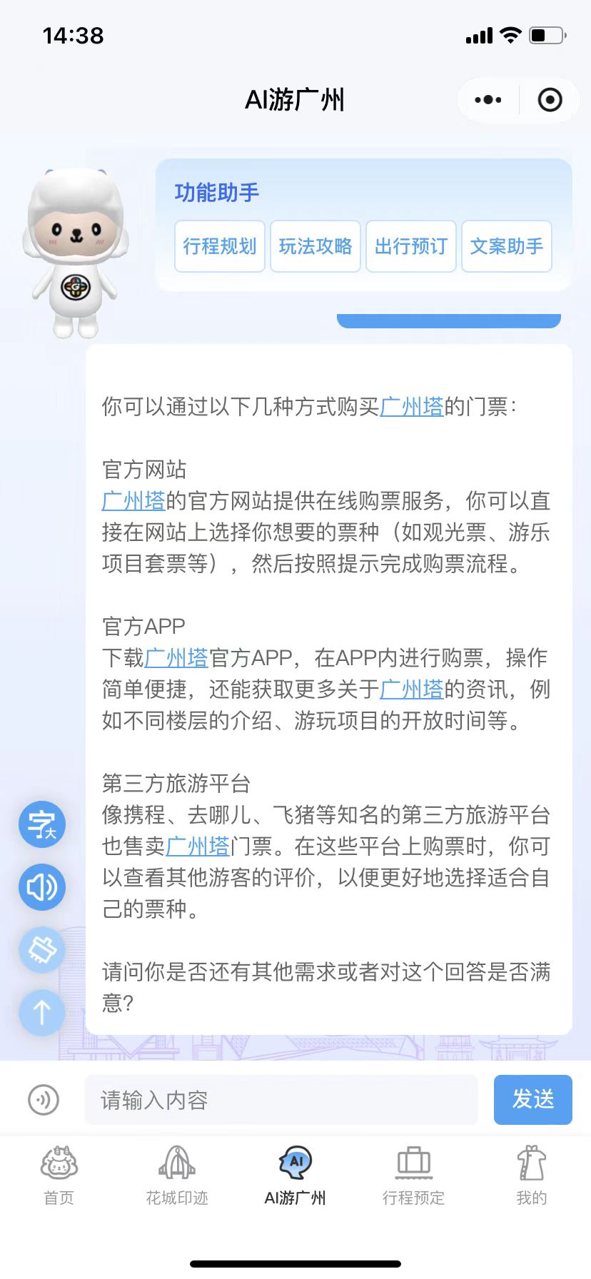 使用“AI游廣州”,游客從咨詢問答到完成預訂形成閉環,增加了游客的便利度,且在互動中產生了更強的粘性和趣味性;也提升了景區、旅企的運營效率,激發新的消費增量。