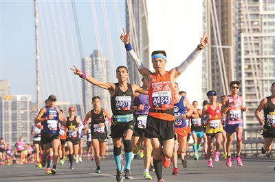 2019年廣馬比賽中,選手們跑過獵德大橋