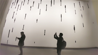 展覽現場,作品《殘山水》中,虛薄的長絲卷如瀑布一般從頂上傾瀉而下,構成別樣的山水景觀。作者梁紹基是中國當代藝術家之中,持久思考如何讓自然物成為藝術的藝術家。梁紹基用最自然的原始之物,通過寫照蠶的生之歷險,創(chuàng)作了一幅生命山水畫卷。蠶吐絲,一般不超過5天,卻能吐出1000多米的絲,這就是生命的紡織。梁紹基把蠶放在各種材料上吐絲,讓蠶根據他的構思去吐絲。這是他獨特的創(chuàng)作手法,也是最困難的地方。梁紹基以蠶創(chuàng)作,絲帛把生命、永恒、東西方的審美哲學勾連起來,寫照一道人文的風景線。