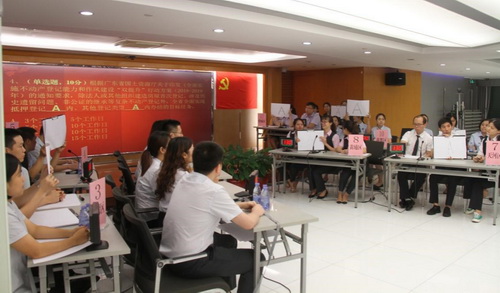 活動(dòng)在莊嚴(yán)的重溫入黨誓詞中拉開了帷幕,市規(guī)劃和自然資源局邱琳總經(jīng)濟(jì)師帶領(lǐng)全體黨員舉起右手莊嚴(yán)宣誓,進(jìn)一步強(qiáng)化了黨員宗旨意識和理想信念。接著,市、區(qū)登記中心及市房地產(chǎn)檔案館代表以詩朗誦、演講等形式進(jìn)行“不忘初心、牢記使命”主題宣講,對不動(dòng)產(chǎn)登記便利度改革、窗口便民服務(wù)、優(yōu)化營商環(huán)境專項(xiàng)行動(dòng)等做法進(jìn)行了充分展示。其后開展的知識競賽設(shè)置了黨章、十九大報(bào)告、習(xí)近平新時(shí)代中國特色社會(huì)主義思想和不動(dòng)產(chǎn)登記政策法規(guī)及業(yè)務(wù)知識等內(nèi)容,各參賽代表隊(duì)踴躍答題,激烈角逐,把活動(dòng)氛圍推向了高潮。經(jīng)加時(shí)搶答,最后由海珠區(qū)不動(dòng)產(chǎn)登記中心代表隊(duì)獲得一等獎(jiǎng),市不動(dòng)產(chǎn)登記中心、花都區(qū)不動(dòng)產(chǎn)登記中心代表隊(duì)獲得二等獎(jiǎng),市房地產(chǎn)檔案館以及白云、增城區(qū)不動(dòng)產(chǎn)登記中心代表隊(duì)獲得三等獎(jiǎng)。