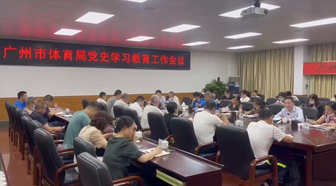 2021年9月9日下午,廣州市體育局召開黨史學習教育工作會議,會議由市管一級調研員、局黨史辦副主任毛繼紅主持,局屬單位黨組織書記、機關黨支部書記、廣州市足球協會黨支部負責人,各單位、各部門黨史學習教育工作聯絡員,以及局黨史辦成員共44人參加了會議。