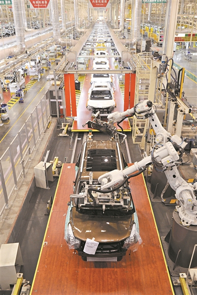 廣汽傳祺的汽車生產線,彰顯科技感。