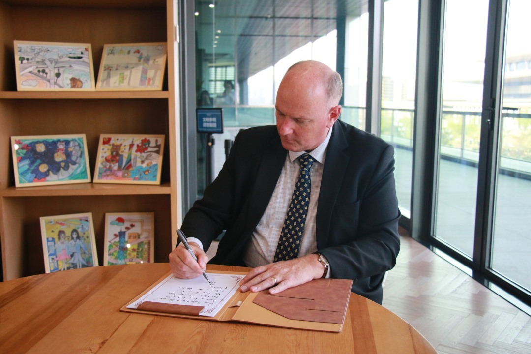 在訪談尾聲,喬文博在留言簿上寫下了自己的期許——“New Zealand and Guangzhou have a long history of friendship and cooperation.We look forward to continuing this positive partnership.(穗新兩地有著悠久的友誼和合作歷史。我們期待繼續深化這種積極的伙伴關系。)”