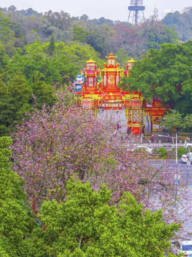 在增城的府佑路、新城大道等城市主干道上,宮粉紫荊迎來了茂盛期。