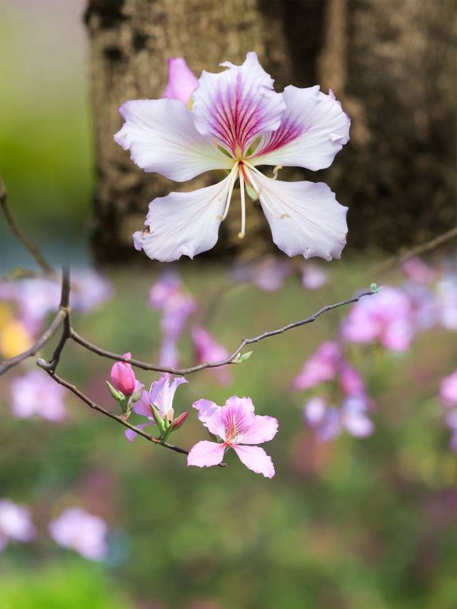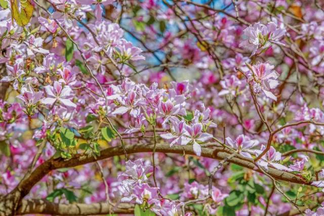 禾雀花、蘭花螳螂、杜鵑花、紫荊花、黃花風鈴木、宮粉紫荊、
