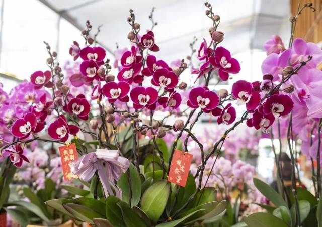 “今年年宵花品種跟往年差不多,目前市場上盆栽每日的交易量在六千盆左右,鮮切花則能賣出二三十萬扎。”嶺南花卉市場相關負責人表示,蝴蝶蘭、劍蘭、菊花、百合都是年宵花里比較受歡迎的品種,蝴蝶蘭已經大量上市,產量比往年多10%~20%,拿貨價也相應有所下降,即便到了旺季價格也會與往年持平或略有下降,市民可以享受到更多實惠。