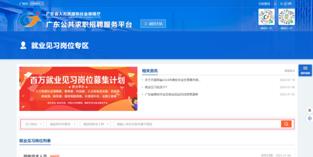 廣東公共求職招聘服務平臺(就業見習崗位專區)網址: