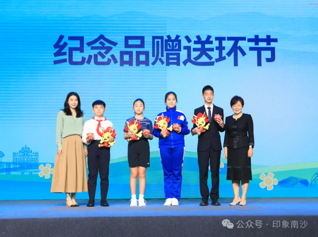 現場,南沙區文化廣電旅游體育局局長魯輝與奧運跳水冠軍、南沙區英東教育培訓中心理事郭晶晶共同向粵港澳三地的學生代表贈送了精心準備的紀念品,表達了南沙對各位來賓的熱烈歡迎。